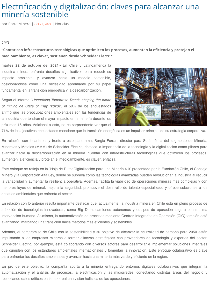 Electrificación y digitalización: claves para alcanzar una minería sostenible - (minerialocal.cl)