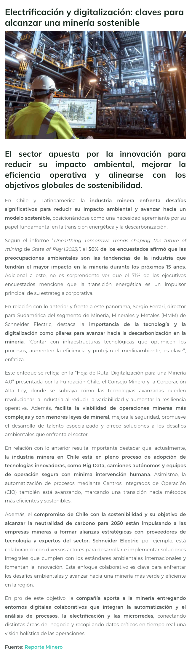 Electrificación y digitalización: claves para alcanzar una minería sostenible - (portalminero)