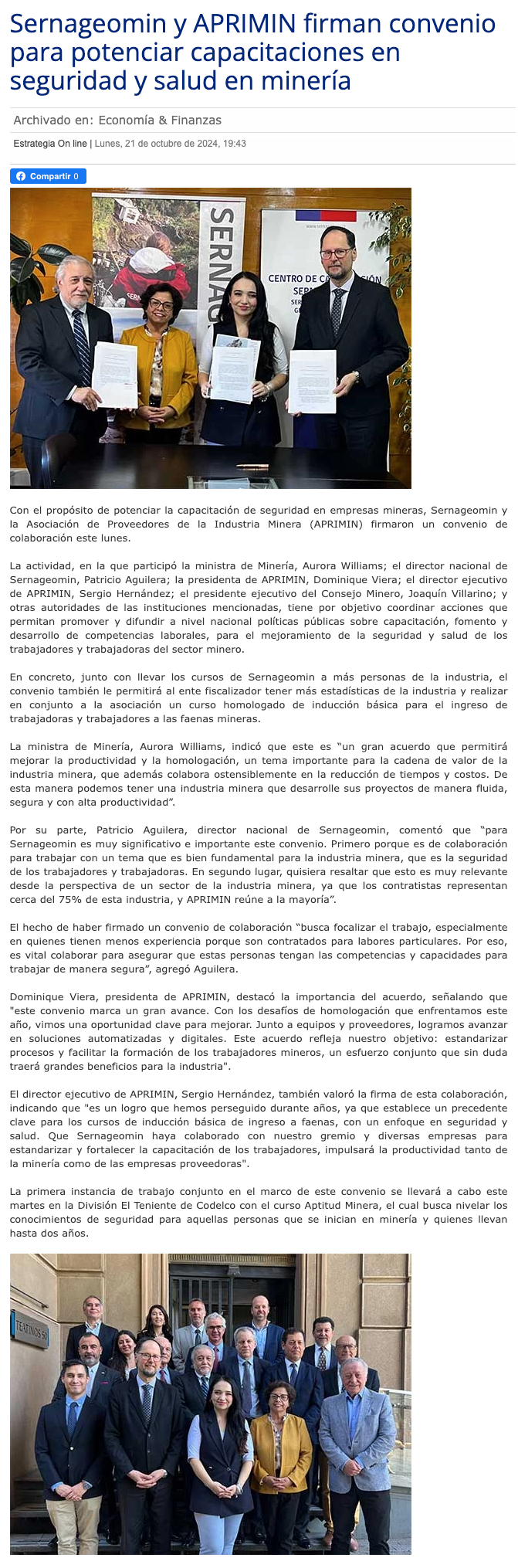 Sernageomin y Aprimin firman convenio para potenciar áreas de seguridad y salud en minería - (mch.cl)
