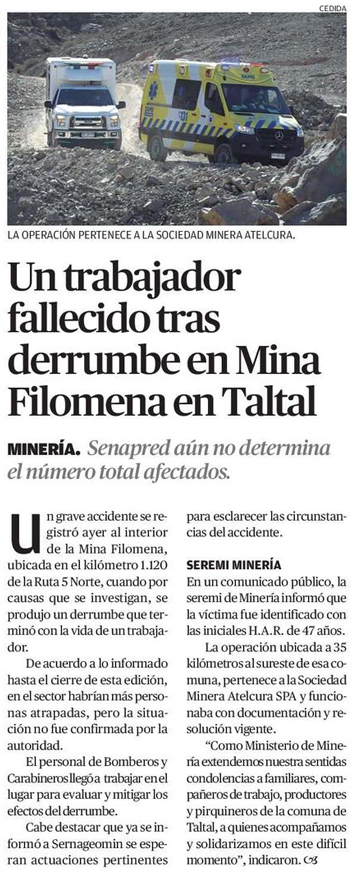 Trabajador falleció en derrumbe de mina en Taltal - (cooperativa online)