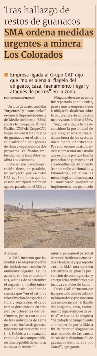 Dictan medidas urgentes contra minera por impacto sobre guanacos - (El Mercurio de Santiago)
