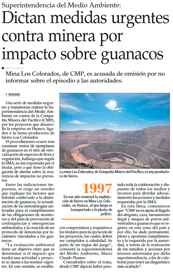 Tras hallazgo de restos de ordena medidas urgentes a minera Los Colorados - (Diario Financiero)