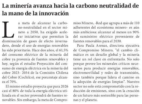 La minería avanza hacia la carbono neutralidad de la mano de la innovación - (cualestuhuella.cl)