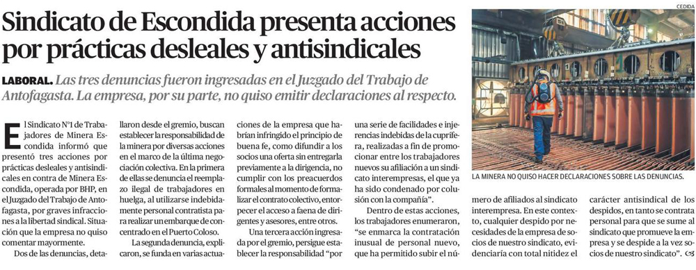Sindicato de Escondida denuncia prácticas antisindicales de BHP - (Pulso)