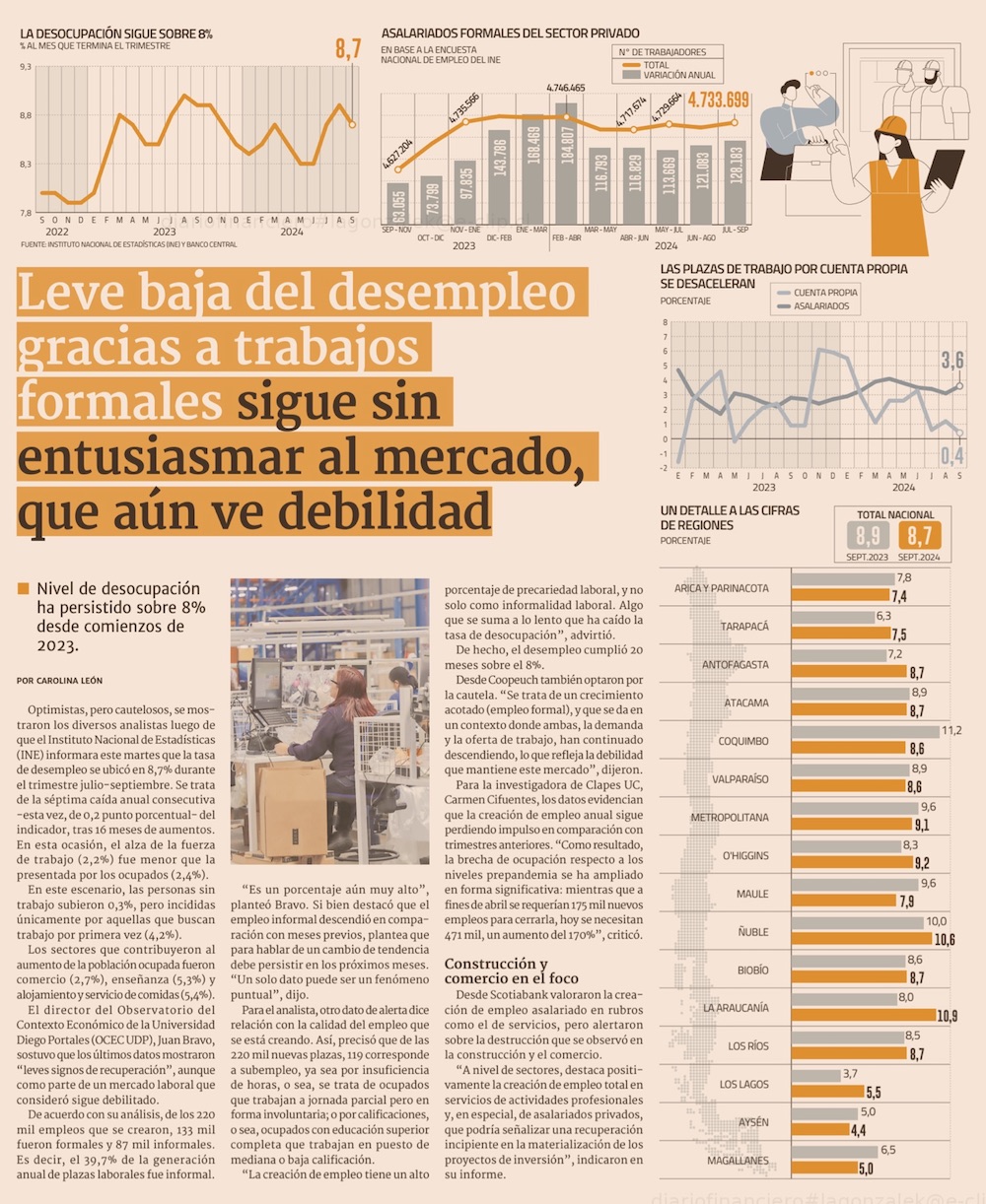 El porcentaje de la población con empleo es la menor desde 2010 y persiste la informalidad - (El Mercurio de Santiago)
