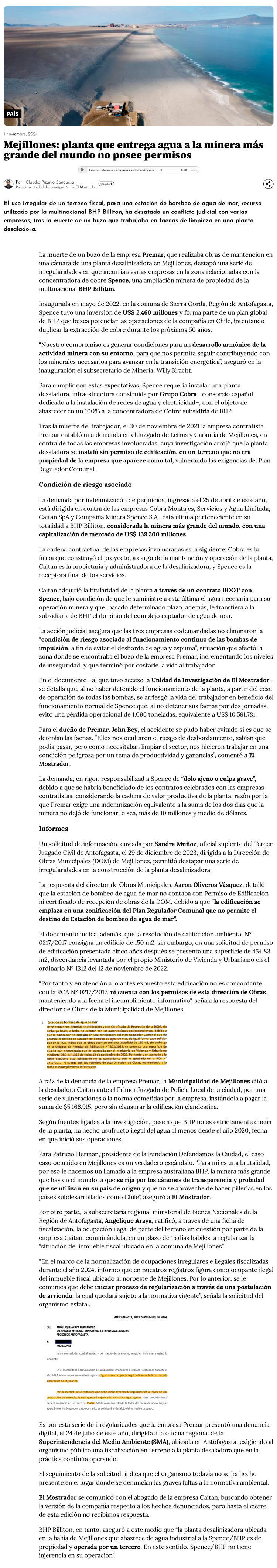 Denuncian presuntas irregularidades en planta desalinizadora de Mejillones - (El Mercurio de Antofagasta)