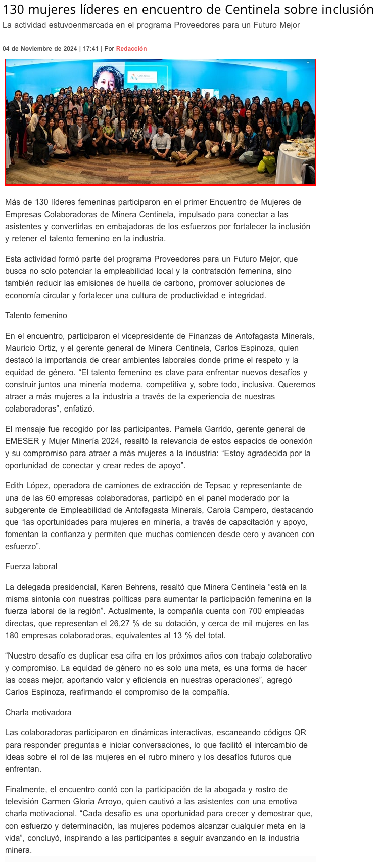 Más de 130 mujeres líderes fueron parte de encuentro minero - (La Estrella)