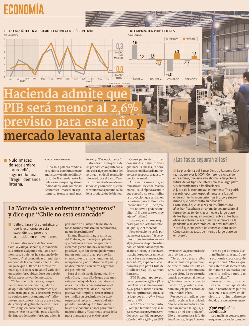 Imacec de 0% en septiembre derriba expectativas de Hacienda para 2024 y expertos ven economía "más debilitada" - (Pulso)