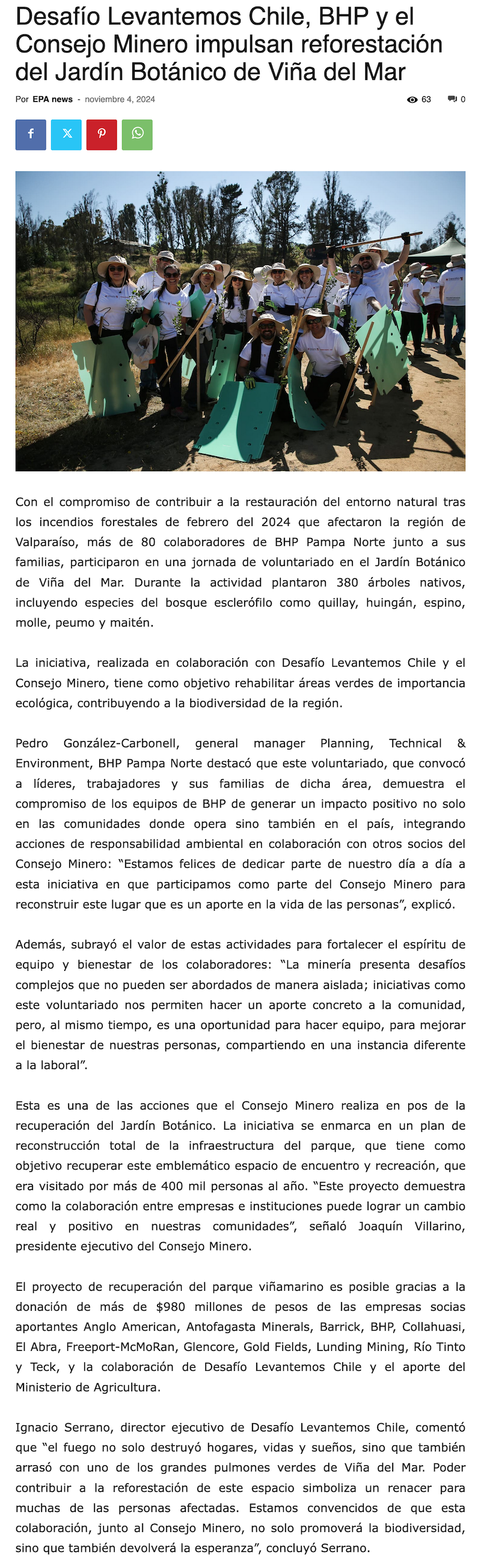 Desafío Levantemos Chile, BHP y el Consejo Minero impulsan reforestación del Jardín Botánico de Viña del Mar - (hoyvalparaiso.cl)