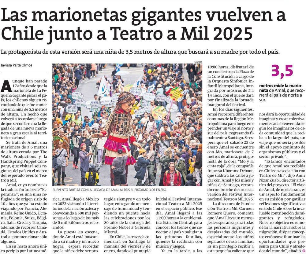 Las marionetas gigantes vuelven a Chile junto a Teatro a Mil 2025 - (Estrella de Concepción)