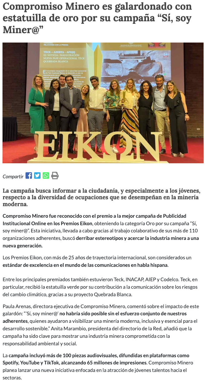 Compromiso Minero es galardonado en la 6° edición de los Premios Eikon 2024 - (mch.cl)