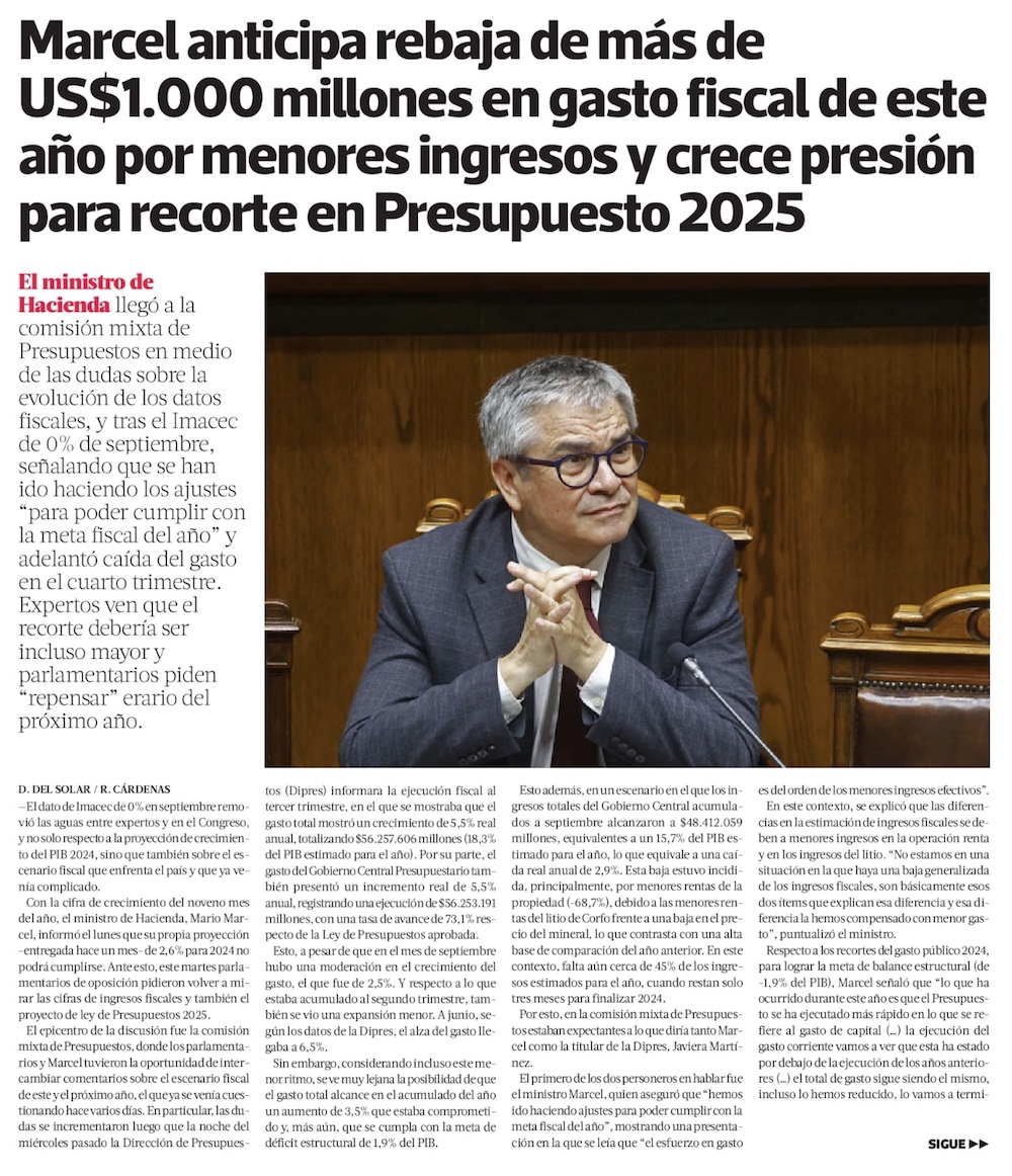 Presupuesto 2025: Gobierno cede y revisará un recorte del gasto y los cálculos de ingresos - (El Mercurio de Santiago)