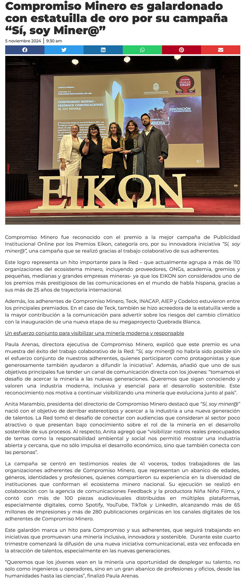 Compromiso Minero es galardonado en la 6° edición de los Premios Eikon 2024 - (mch.cl)