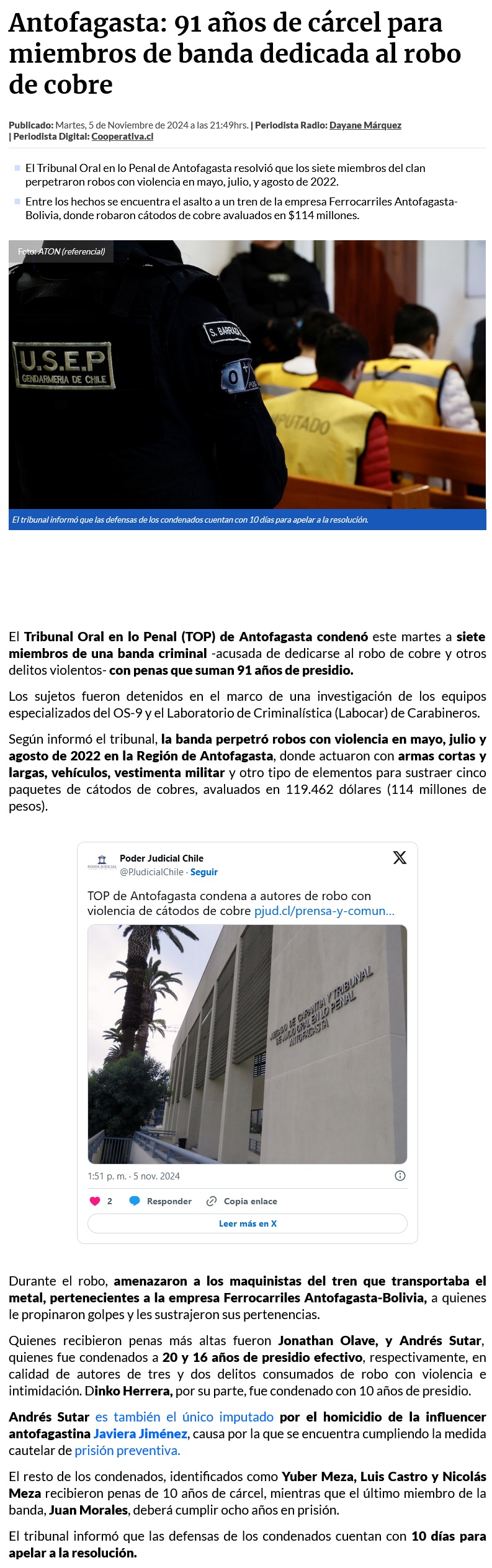 Condenan a banda dedicada al robo de cobre en Antofagasta: Entre ellos está el presunto asesino de influencer - (emol)