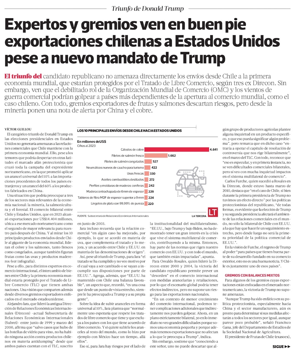 Positiva mirada entre exportadores de fruta y salmones a EEUU contrasta con inquietud entre mineros - (Diario Financiero)