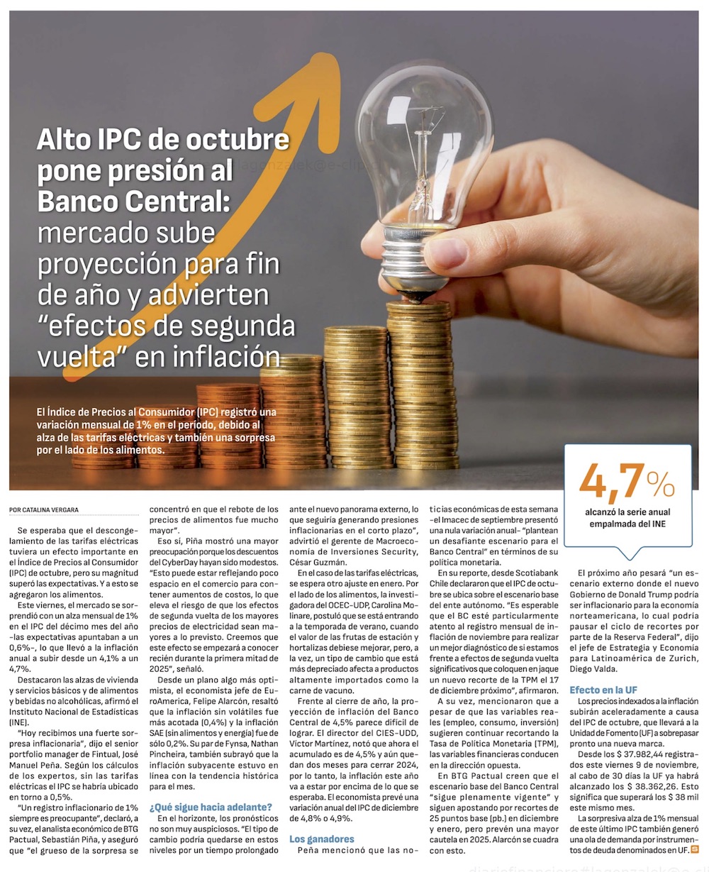Tras alto IPC de octubre, economistas elevan proyección para inflación 2024 y se abre debate por TPM de diciembre - (Pulso)