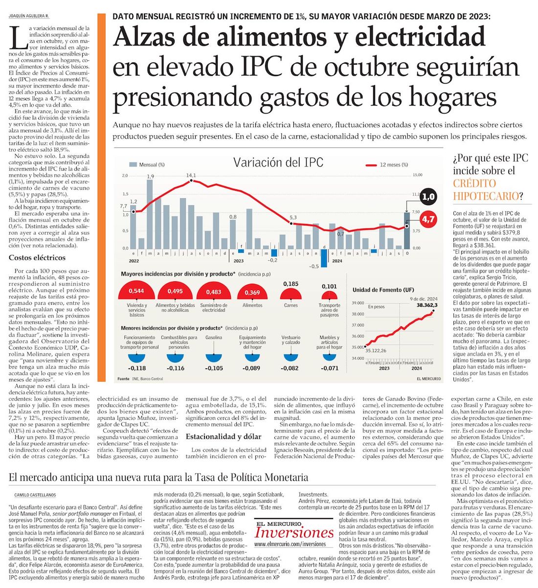 Tras alto IPC de octubre, economistas elevan proyección para inflación 2024 y se abre debate por TPM de diciembre - (Pulso)