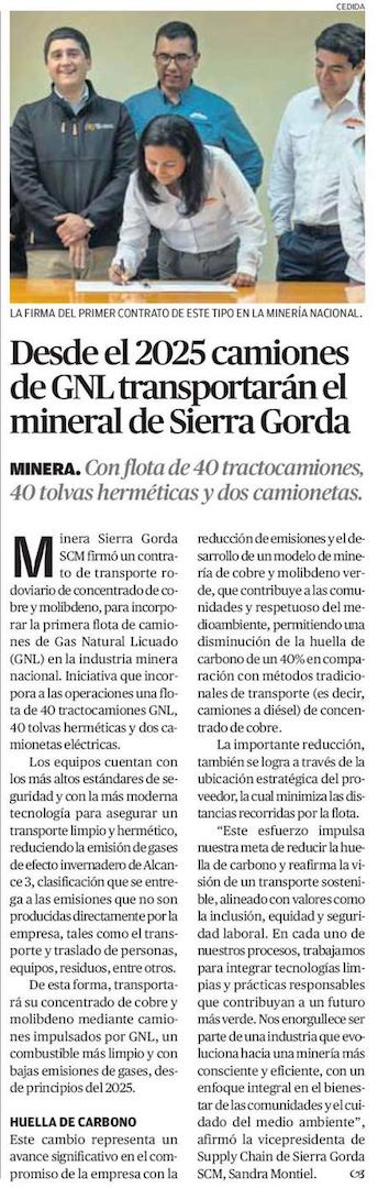 Sierra Gorda SCM firmó el primer contrato en la industria minera chilena de transporte en camiones a gas natural licuado - (timeline)