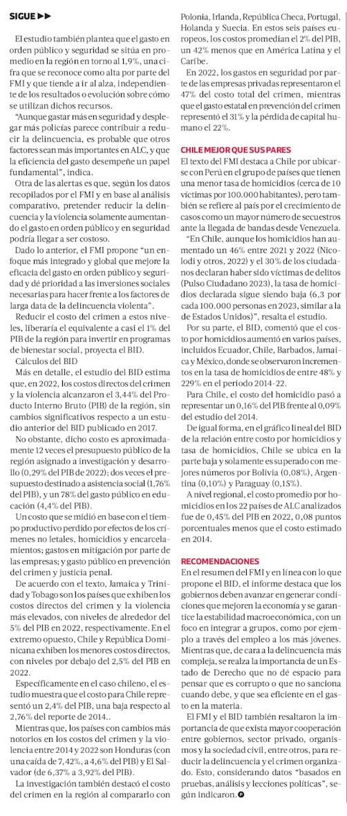 FMI y BID estiman que la violencia reduce el PIB de América Latina en más de 3% - (El Mercurio de Santiago)