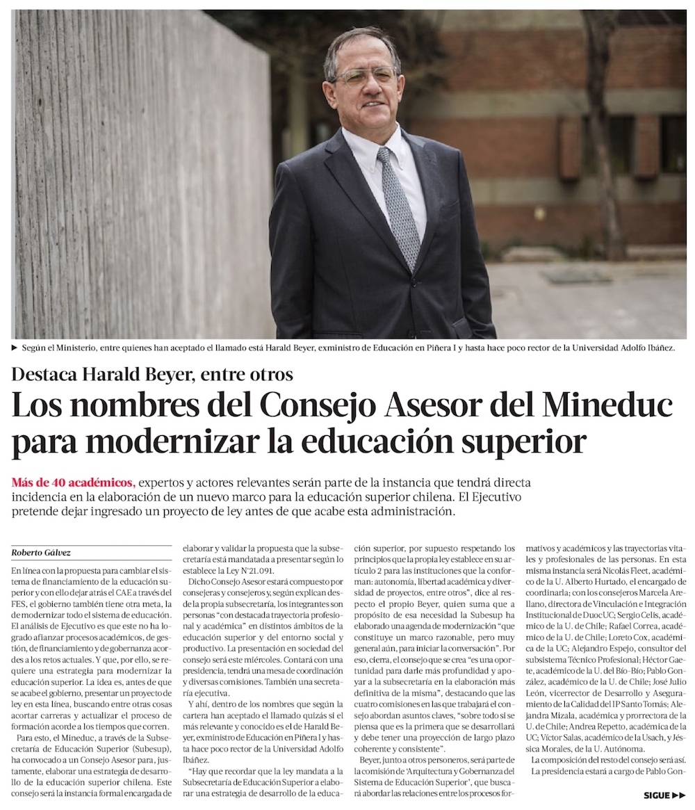 Con Harald Beyer entre ellos: los nombres del Consejo Asesor del Mineduc para modernizar la educación superior - (La Tercera Online)