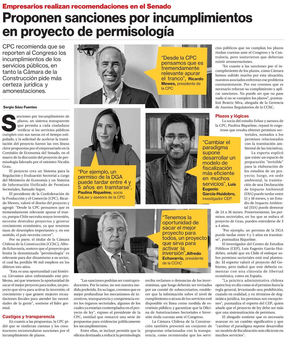 CPC alerta sobre aumento de costos vinculados a evaluación de proyectos por “permisología” - (El Mercurio de Santiago)