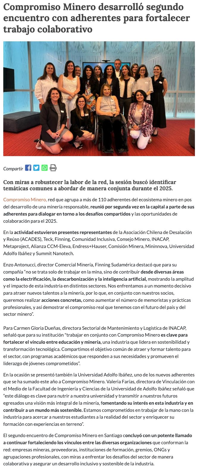 Compromiso Minero desarrolló segundo encuentro con adherentes para fortalecer trabajo colaborativo - (Nostálgica Online)