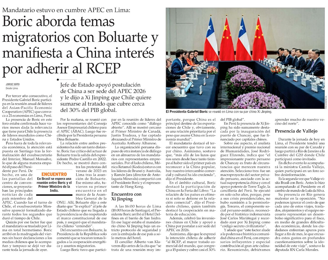 Cómo está la APEC ante el retorno de Trump y el creciente despliegue de China - (El Mercurio de Santiago)