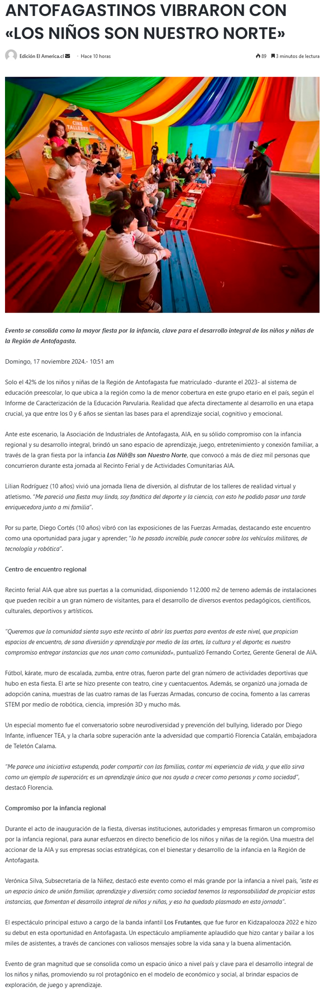 Los Niñ@s son Nuestro Norte - (El Mercurio de Antofagasta)