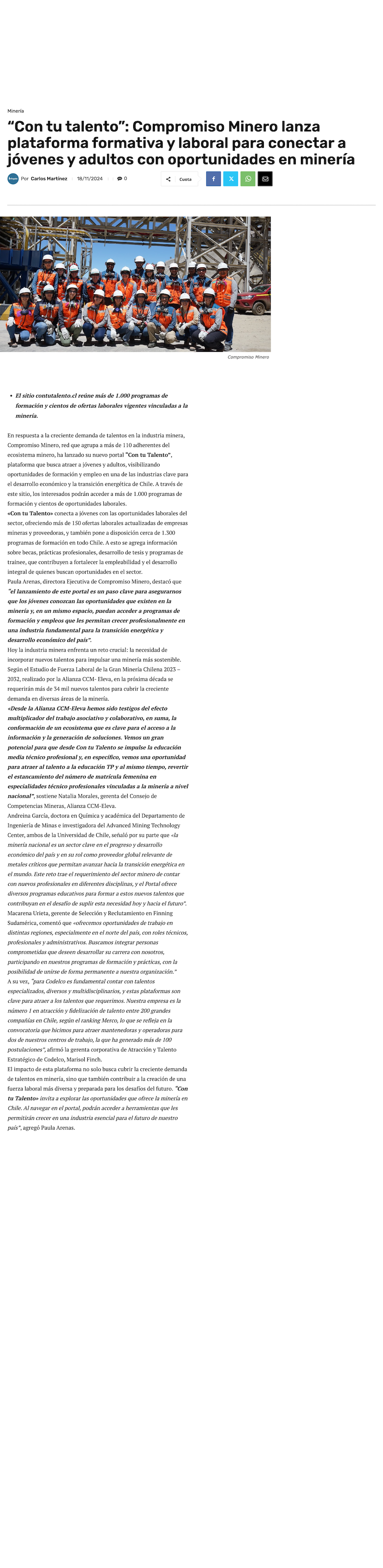 Plataforma formativa lanzó Compromiso Minero para conectar con oportunidades laborales en el sector minero - (revistacrisol.cl)