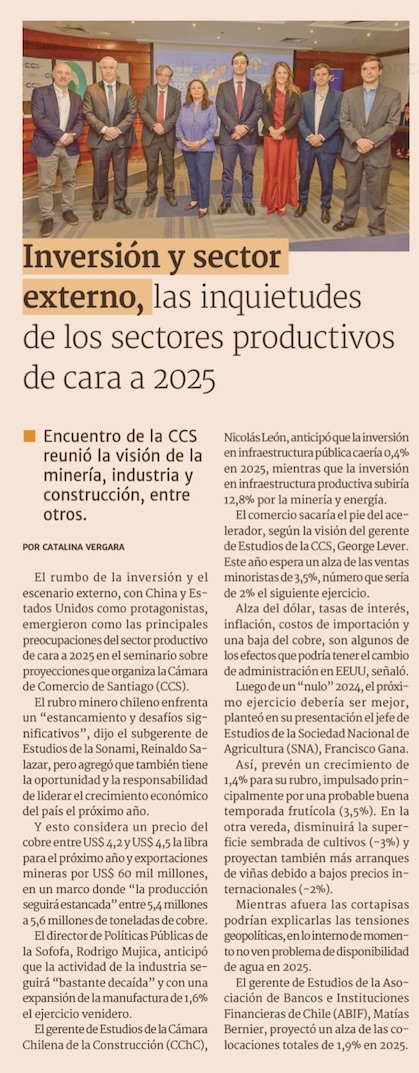 Gremios prevén magras perspectivas para cierre de 2024 y un bajo crecimiento el próximo año - (El Mercurio de Santiago)