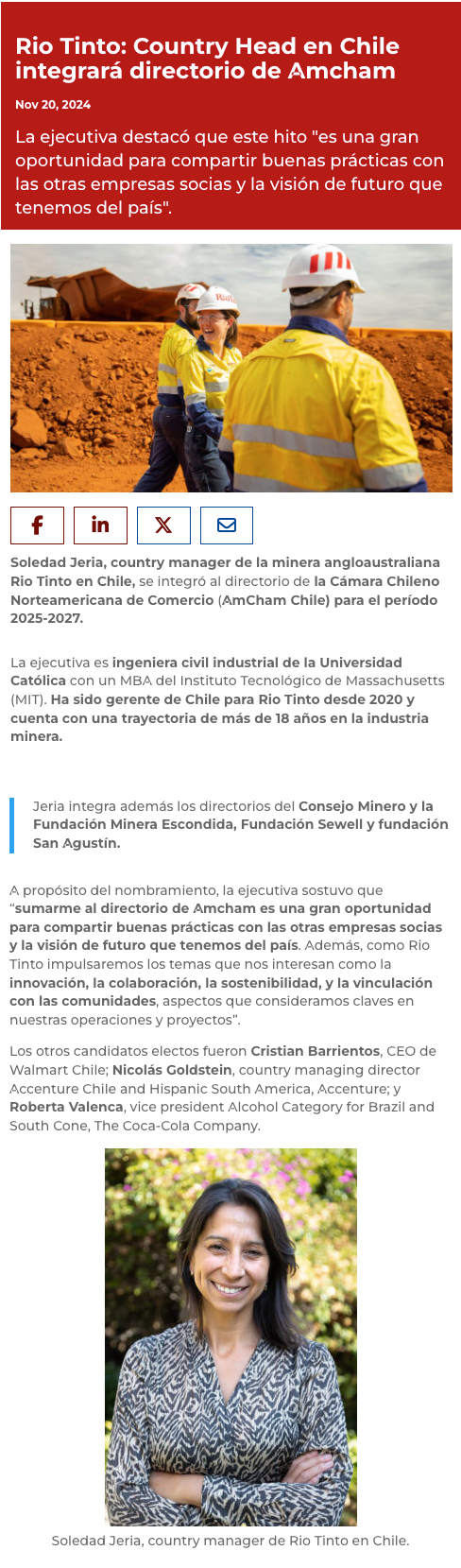 Country Head de minera Rio Tinto en Chile integrará directorio de AmCham - (mvcomunicaciones.cl)