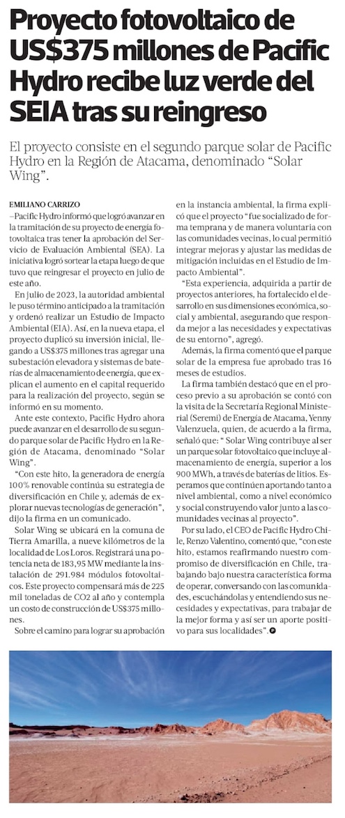 SEA aprobó Parque fotovoltaico "Solar Wing" - (El Diario de Atacama)