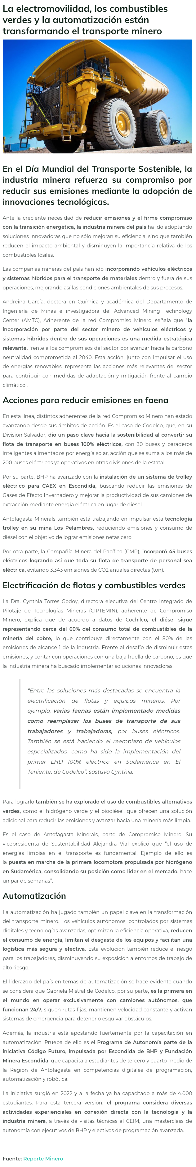 La electromovilidad, los combustibles verdes y la automatización están transformando el transporte minero - (portalminero)