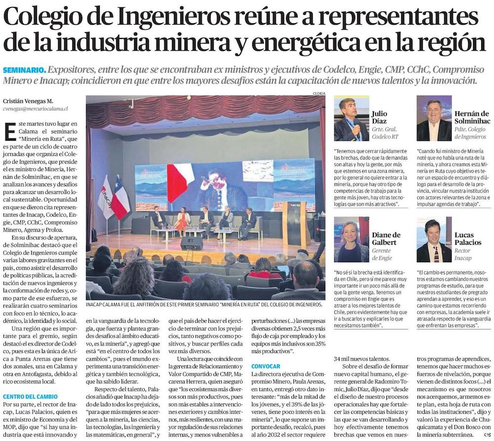 Colegio de Ingenieros reúne a representantes de la industria minera y energética en la región - (El Mercurio de Calama)