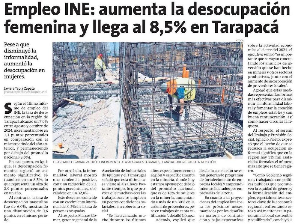 INE: desocupación nacional bajó a 8,6% en el trimestre agosto-octubre - (Diario Financiero)