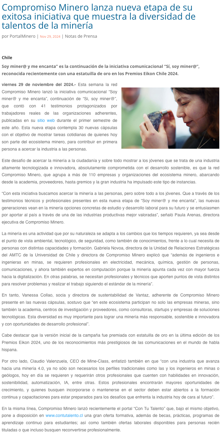 Compromiso Minero lanza nueva etapa de iniciativa que muestra la diversidad de talentos de la minería - (mch.cl)