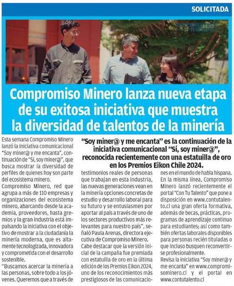 Compromiso Minero lanza nueva etapa de su exitosa iniciativa que muestra la diversidad de talentos en la minería - (El Día)