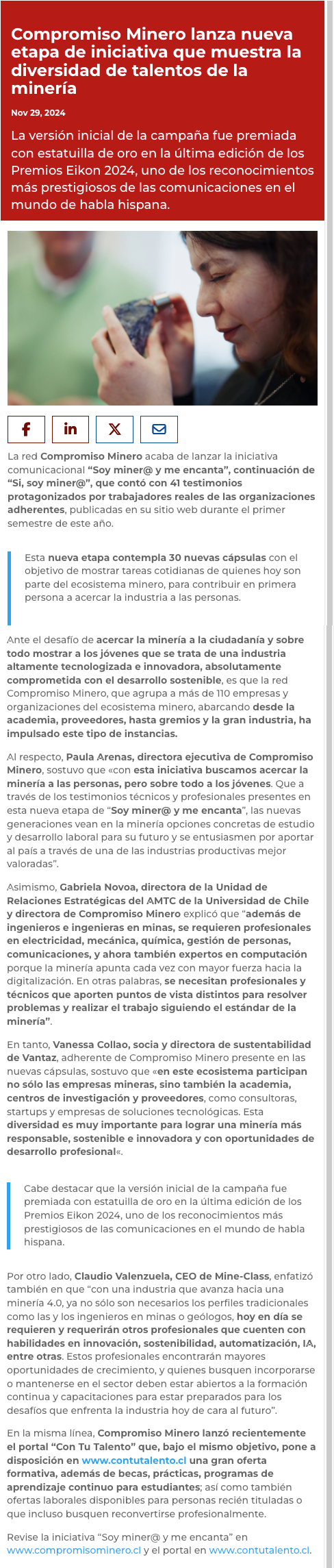 Compromiso Minero lanza nueva etapa de su exitosa iniciativa que muestra la diversidad de talentos en la minería - (El Día)