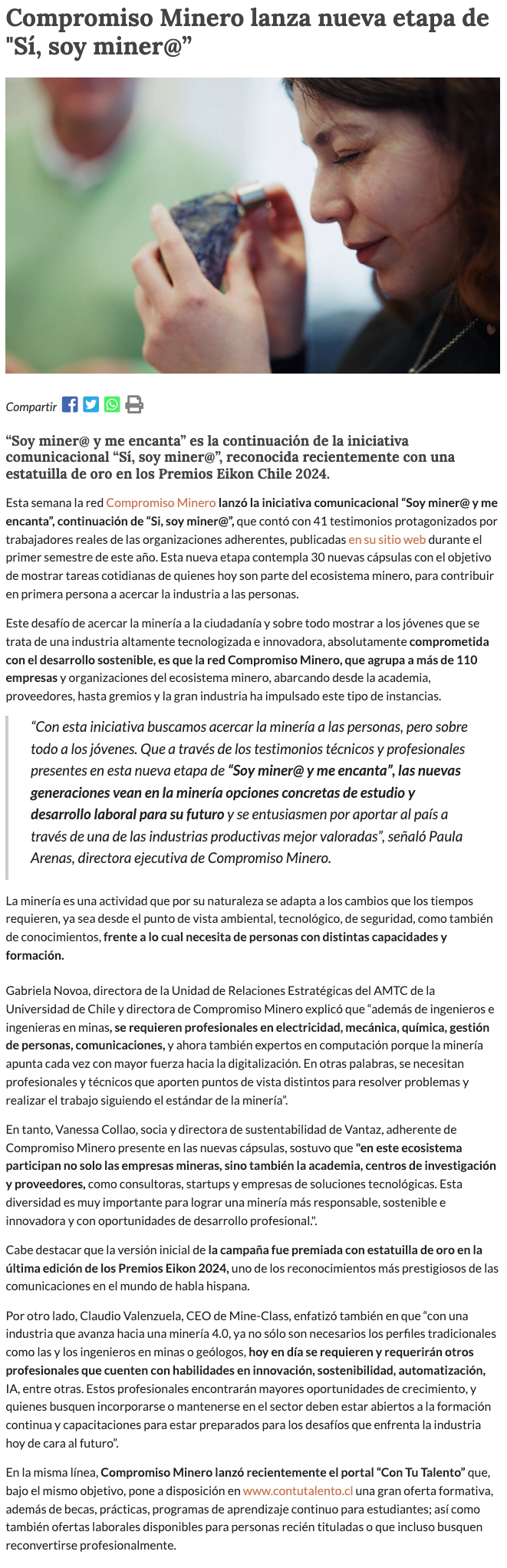Compromiso Minero lanza nueva etapa de su exitosa iniciativa que muestra la diversidad de talentos de la minería - (portalinnova.cl)