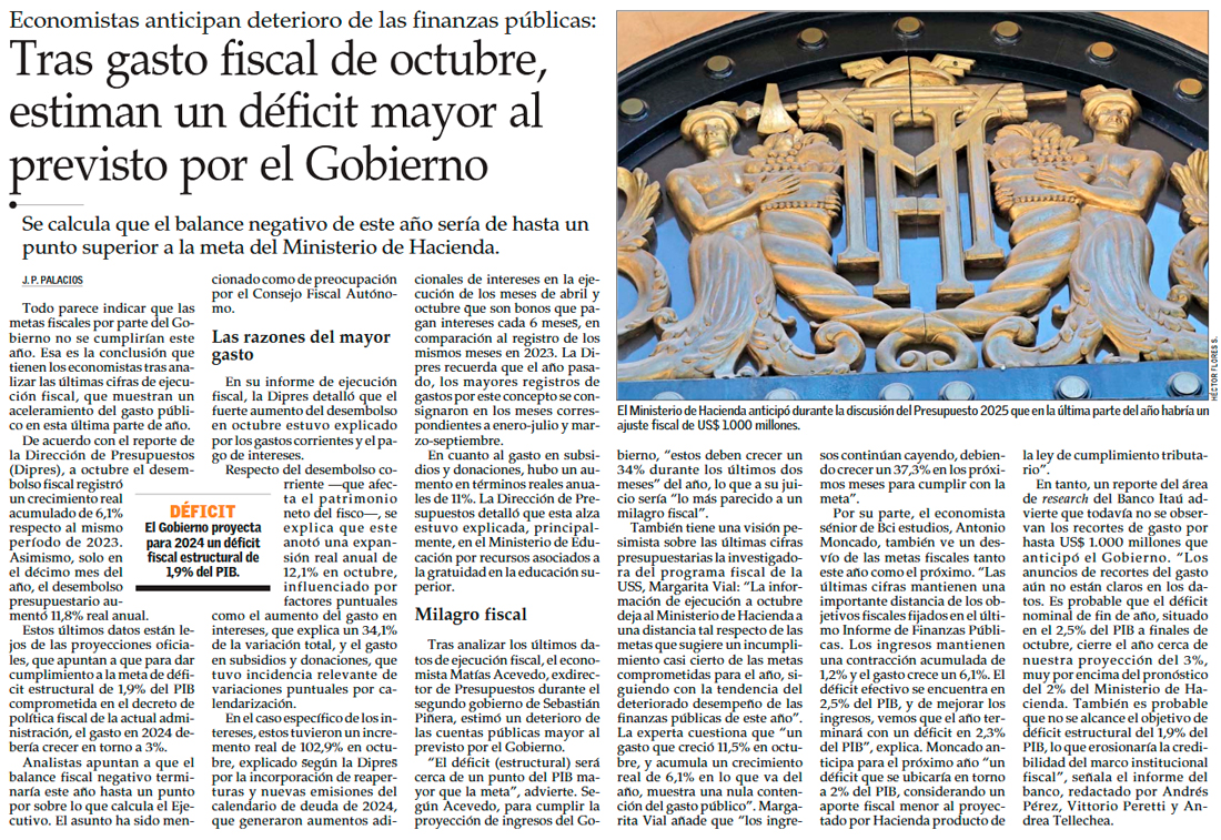 Gasto público debería caer hasta 30% en noviembre-diciembre para que se cumpla la meta fiscal comprometida por Hacienda en 2024 - (Pulso)