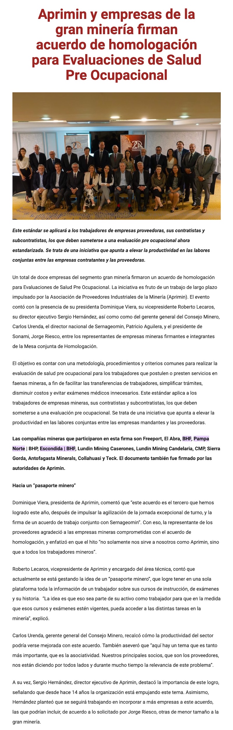 Aprimin y empresas de la gran minería firman acuerdo de homologación para Evaluaciones de Salud Pre Ocupacional - (Nostálgica Online)