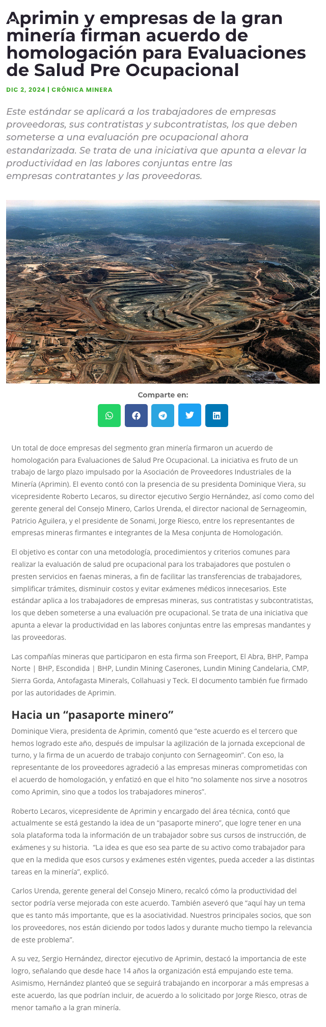 Aprimin y empresas de la gran minería firman acuerdo de homologación para Evaluaciones de Salud Pre Ocupacional - (tierramarillano.cl)