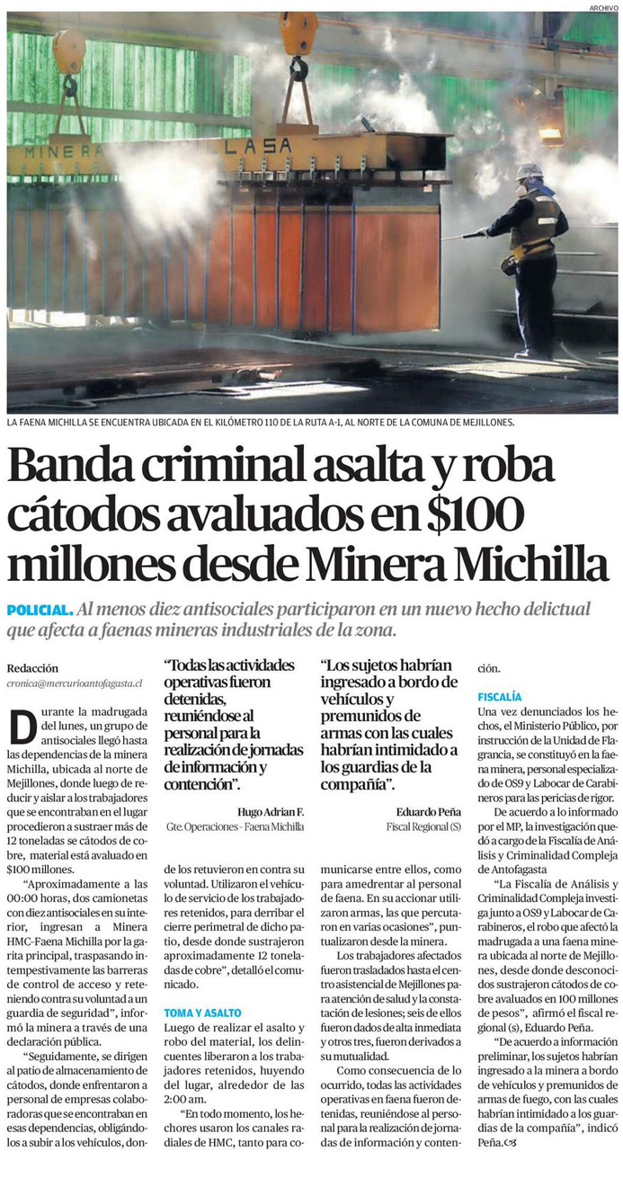 Delincuentes armados sustraen toneladas de cobre desde faena Michilla en Mejillones - (timeline)