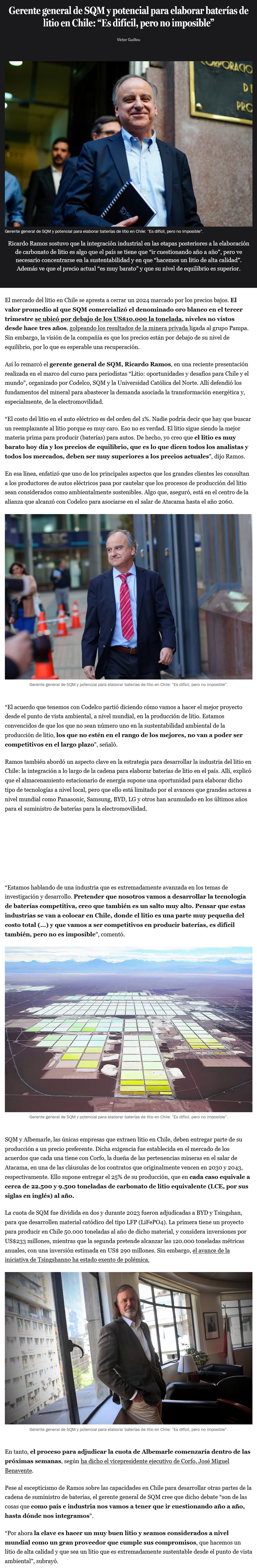 Gerente general de SQM y potencial para elaborar baterías de litio en Chile: "Es difícil, pero no imposible" - (Pulso)