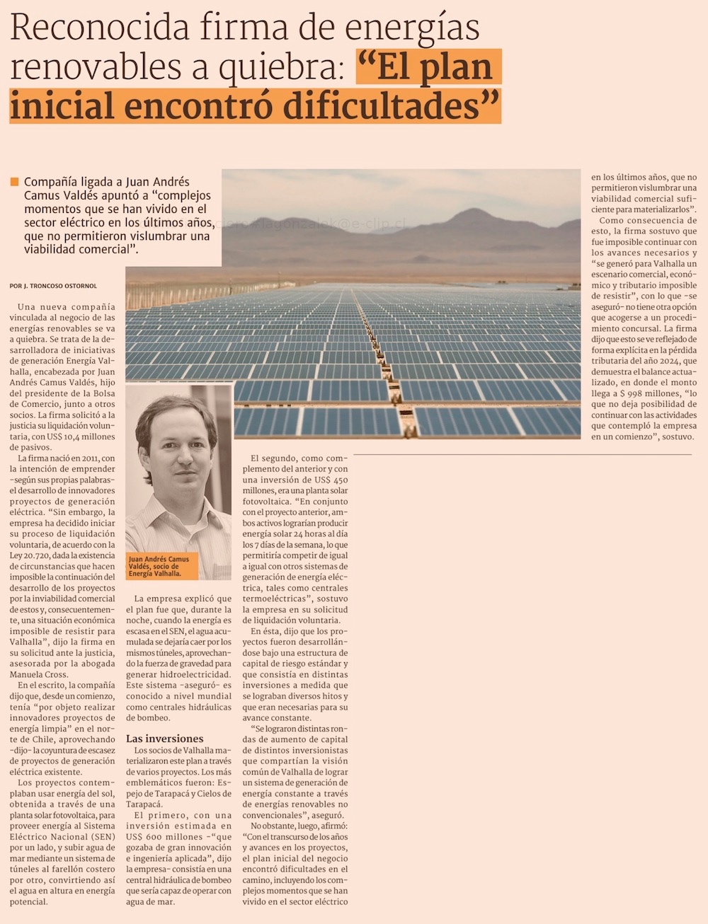 Juan Andrés Camus pone fin al millonario proyecto Valhalla - (La Segunda)