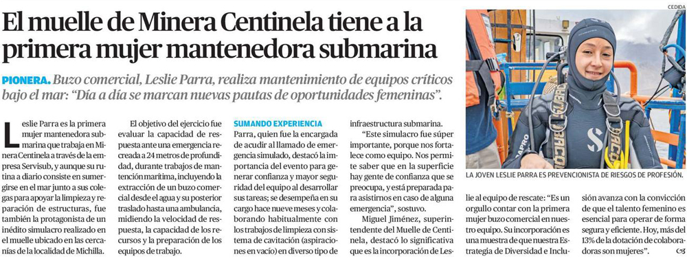 La primera mantenedora submarina de minera Centinela protagoniza simulacro en Michilla - (soyantofagasta)