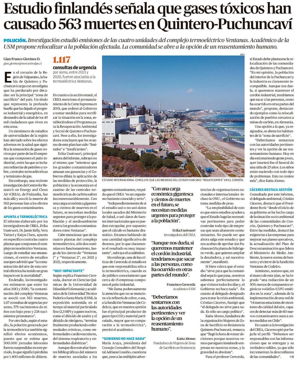 Informe internacional atribuye más de 500 muertes a la polución - (Estrella de Valparaíso)