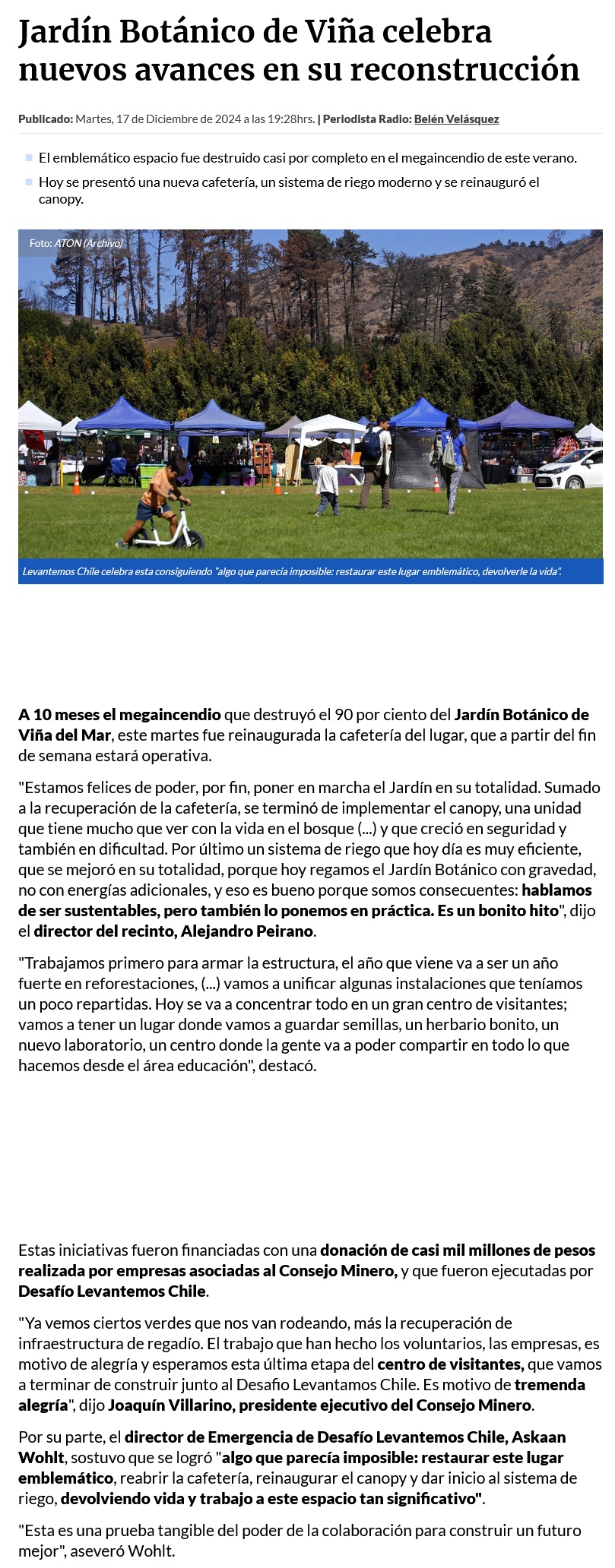 Entrega de cafetería, sistema de riego y canopy marcan el cierre 2024 de la reconstrucción del Jardín Botánico de Viña del Mar - (mediabanco.com)