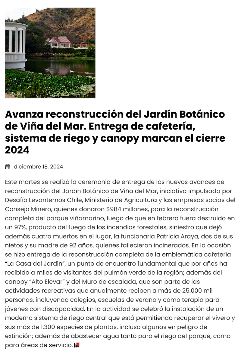 Entrega de cafetería, sistema de riego y canopy marcan el cierre 2024 de la reconstrucción del Jardín Botánico de Viña del Mar - (mediabanco.com)
