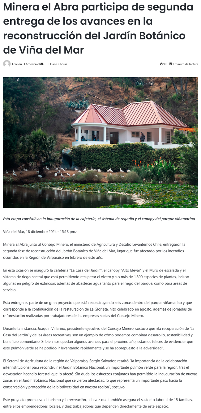 Minera el Abra participa de segunda entrega de los avances en la reconstrucción del Jardín Botánico de Viña del Mar - (timeline)
